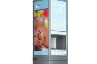 The SaniPost units dispense quick-drying, alcohol-free foam. The hand-wash service is free and carries three advertising panels.